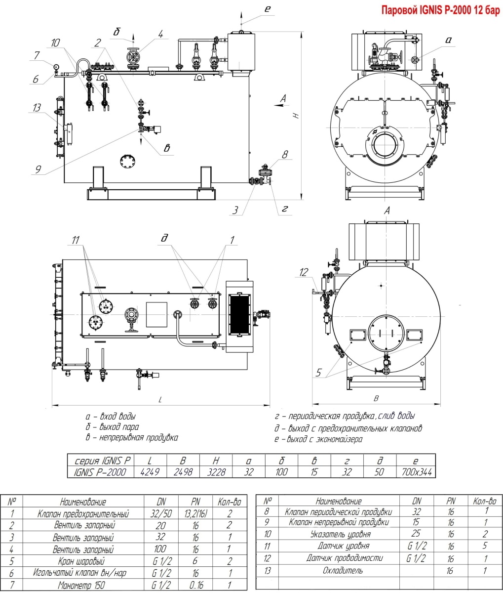 Технические характеристики парового трёхходового котла ARCUS IGNIS P-2000