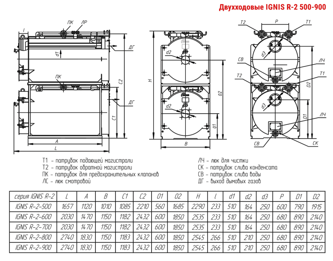 Технические характеристики модульного водогрейного трёхходового котла ARCUS IGNIS R-2-900