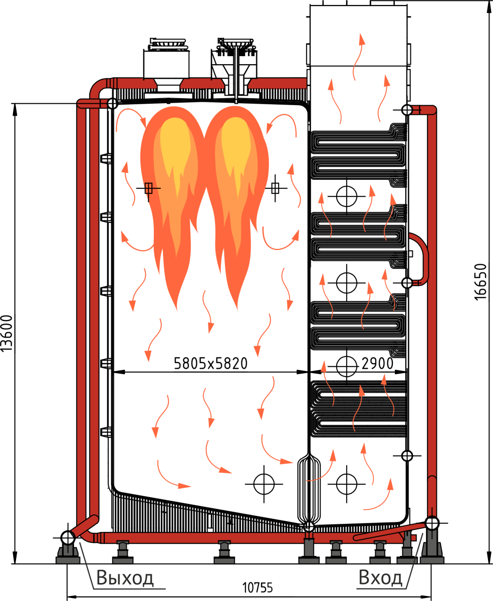 - Усиленный каркас котла для сейсмичных районов